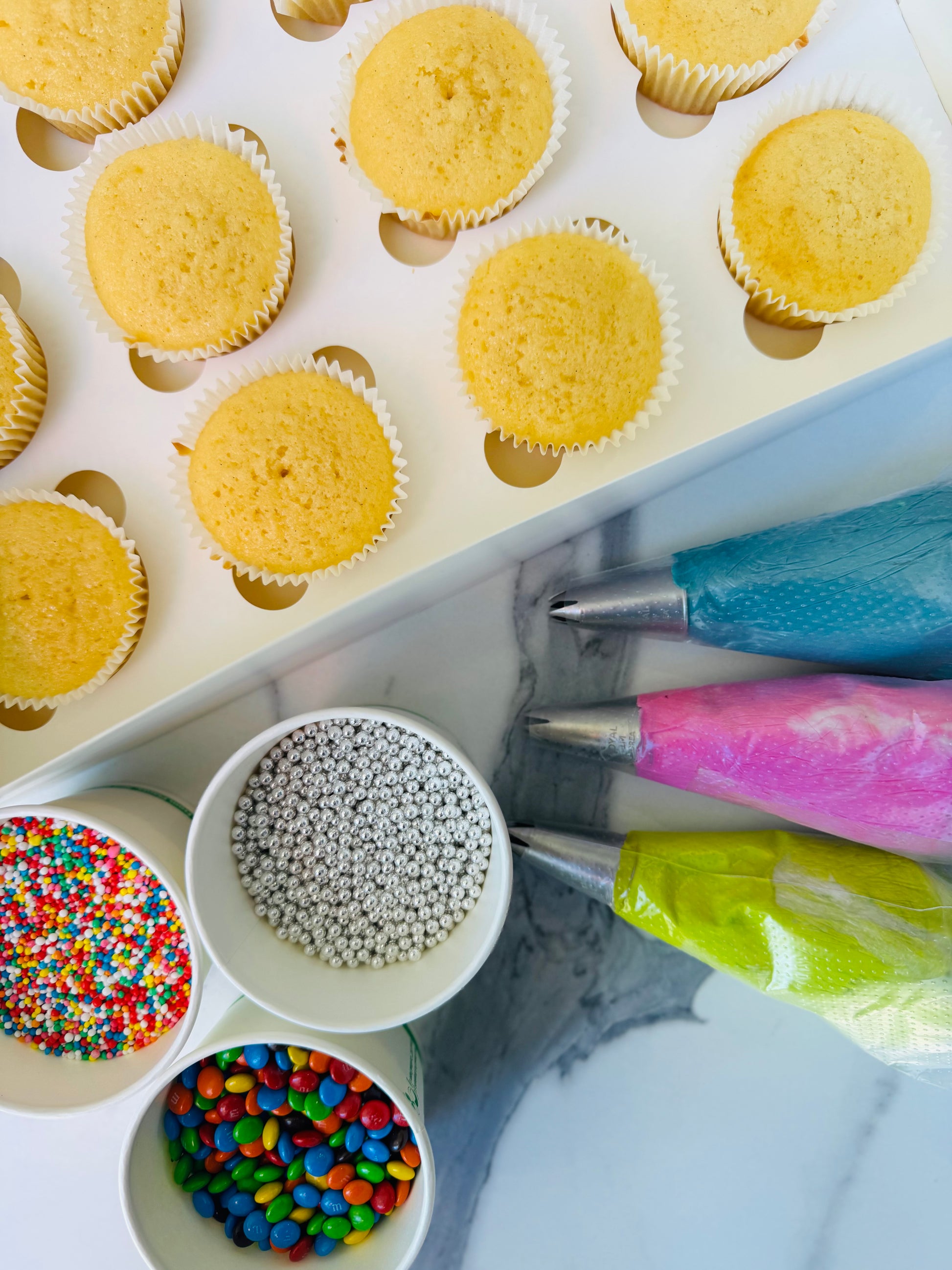 Unleash your inner baker with our DIY Cupcake Box – perfect for parties, gifts, or just a sweet treat at home! Each box comes with freshly baked cupcakes, three vibrant icing colours, and a variety of fun sprinkles so you can decorate your own delicious creations. No mess, no stress – just pure decorating joy for kids and adults alike!