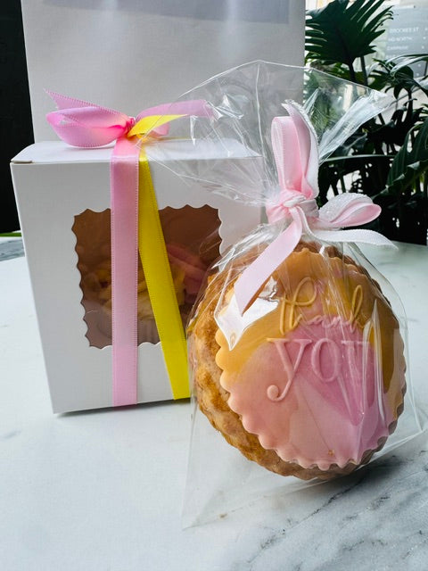 Sometimes the best way to say thank you is with something sweet! Our Thank You Bags come beautifully packaged with one of our signature cookies and a delicious cupcake — the perfect little treat to show your appreciation in the most heartfelt (and tasty) way.